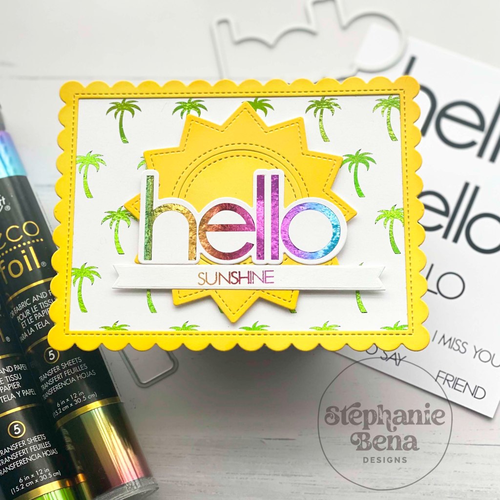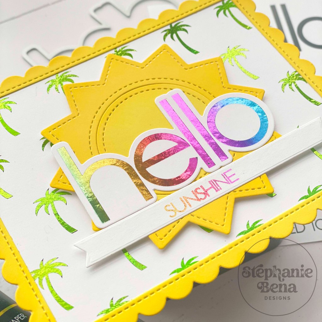 For my Hello Sunshine card, I used their new Toner Card Front and die cut. I really loved using the die cut to get a perfect cut for my foiled Hello!